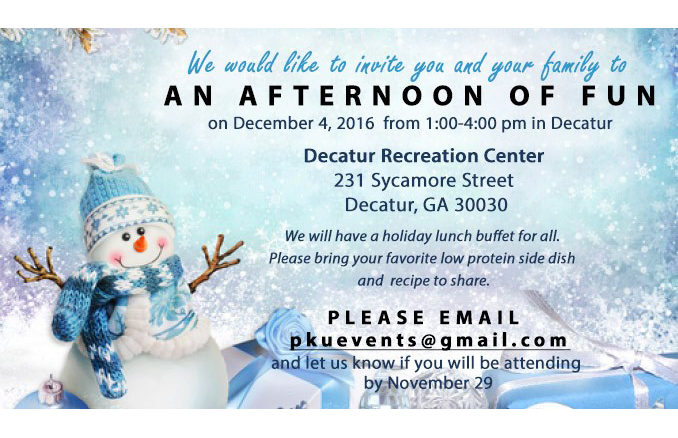 Georgia PKU Connect’s end of year board of directors meeting will be held directly after the event and members are welcome to attend!